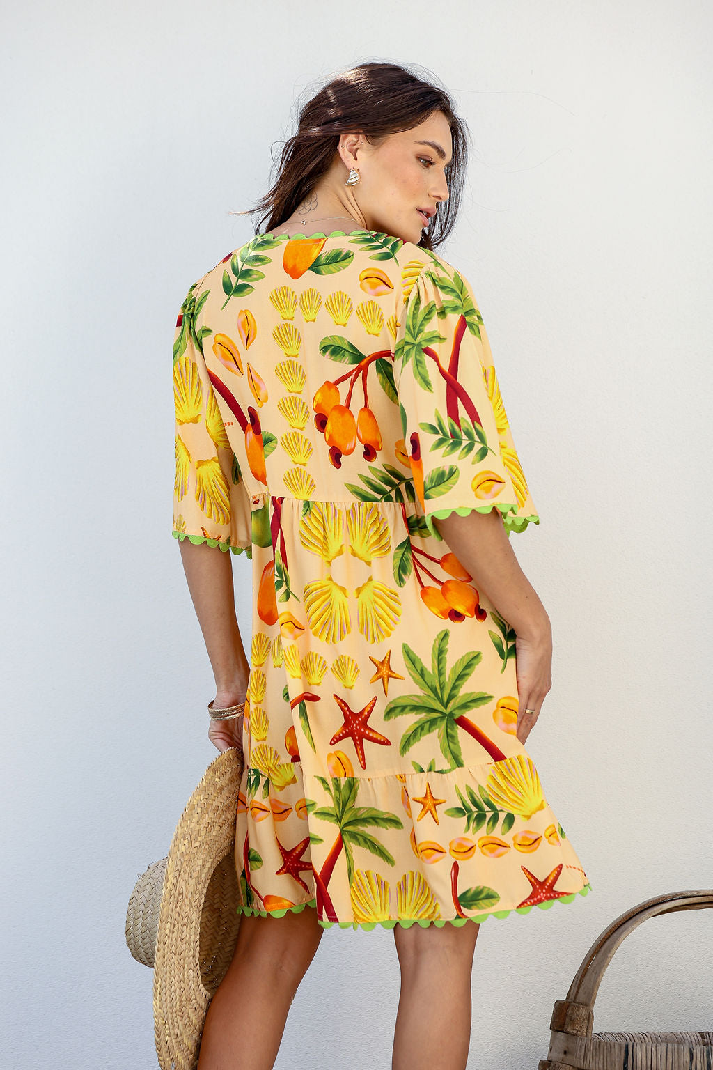 Made from pure viscose, this short dress combines understated elegance with functional design—perfect for warm-weather dressing. The generous cut promotes ease of movement and all-day comfort. A timeless wardrobe piece that moves seamlessly between everyday wear and informal social settings.
