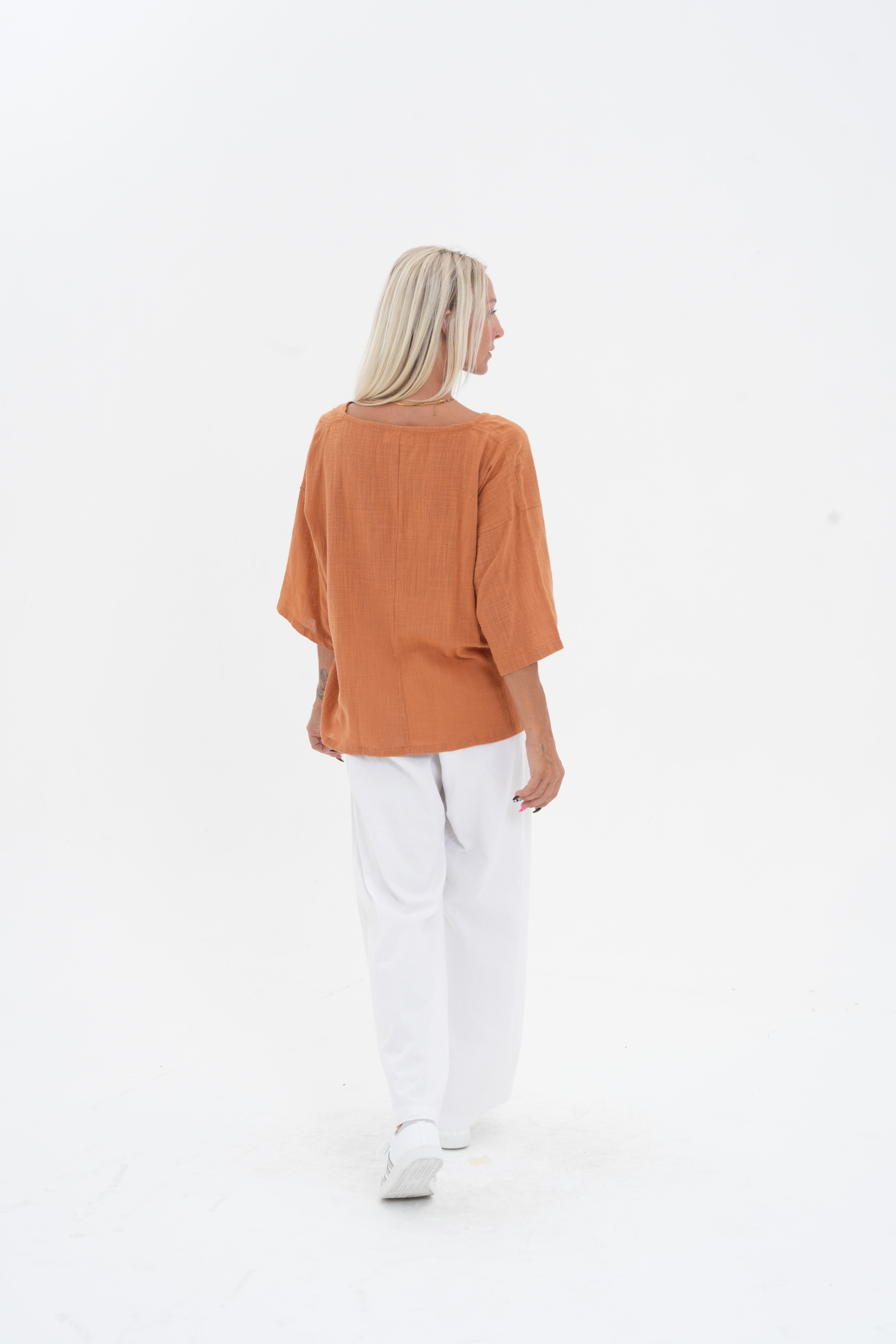 Elevate your style from a regular Tee in the Carbon Koa ¾ Top. A relaxed yet not oversized V neck T style top with an elegant ¾ sleeve, V neckline and crafted from a breezy 100% Cotton Crepe.